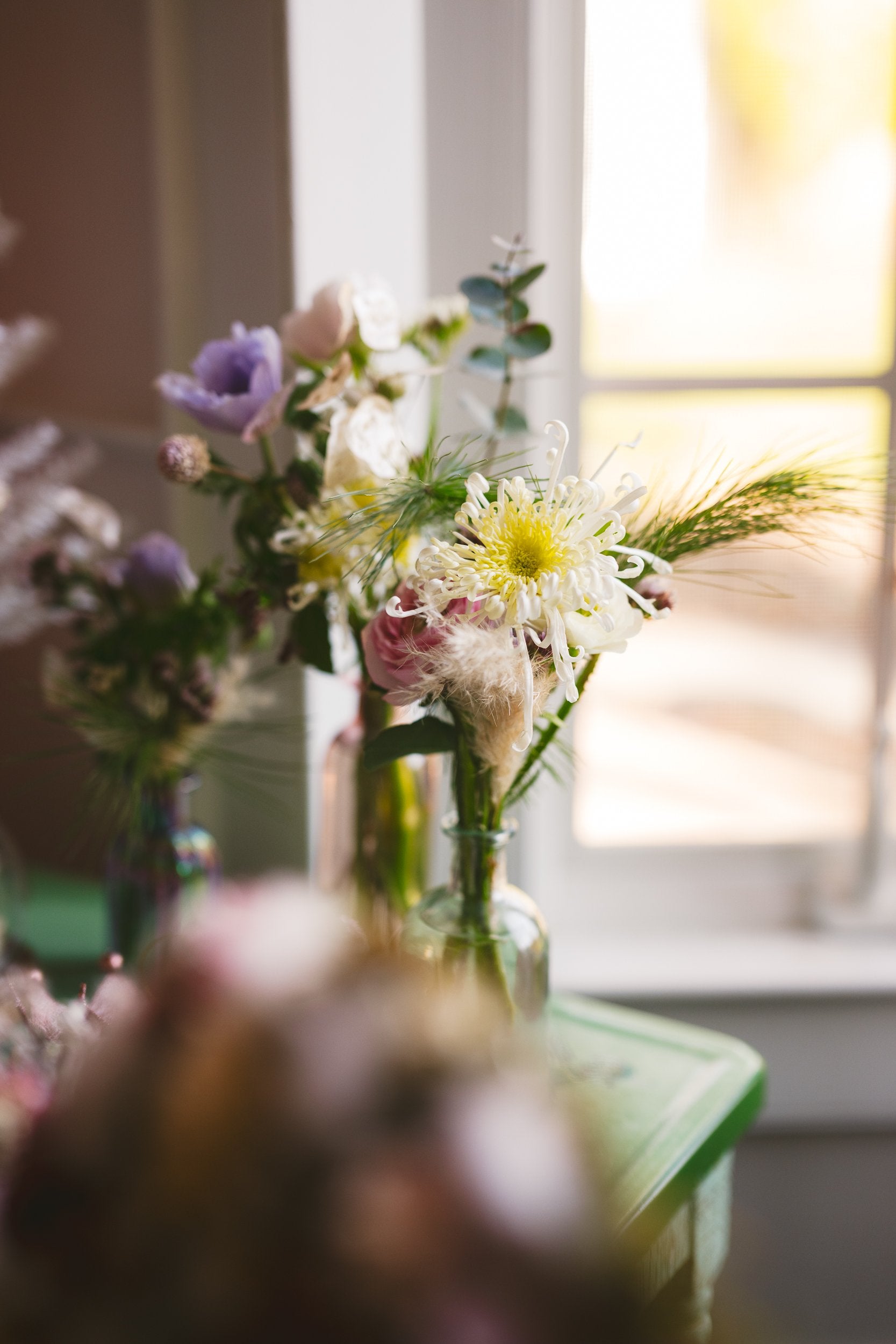 An airy bud vase with some delicate whimsical seasonal florals to complete your Thanksgiving decor. Style them on their own, or group them in sets of two or three to complement a centerpiece. Serving family style? Order a whole bunch and have them run down or around an entire table! Florals are designed in a mix of clear glass bud vases in a variety of heights and styles.