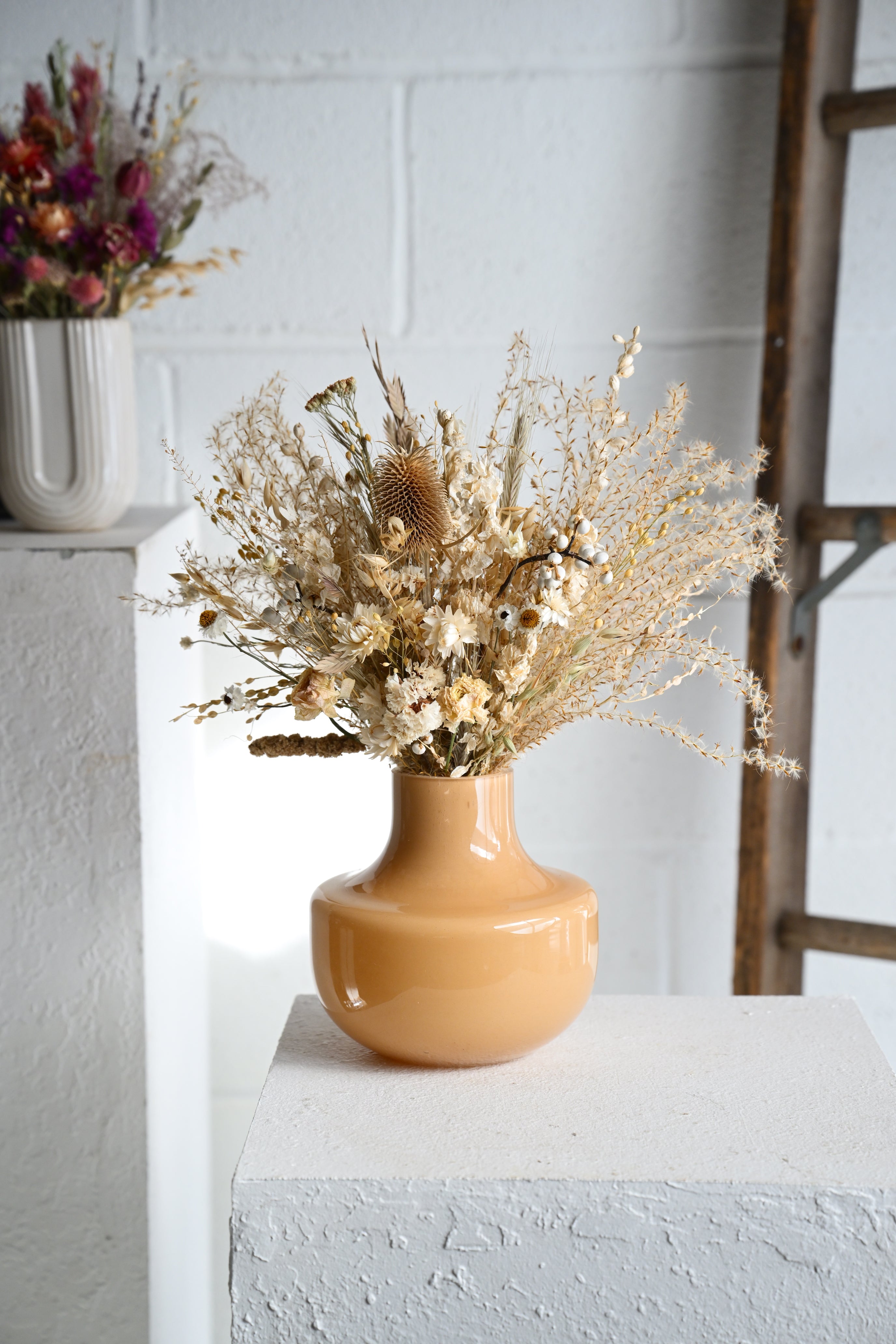 • Dried florals are naturally delicate — display away from direct sunlight, high-traffic areas, and humidity to preserve their color and form.