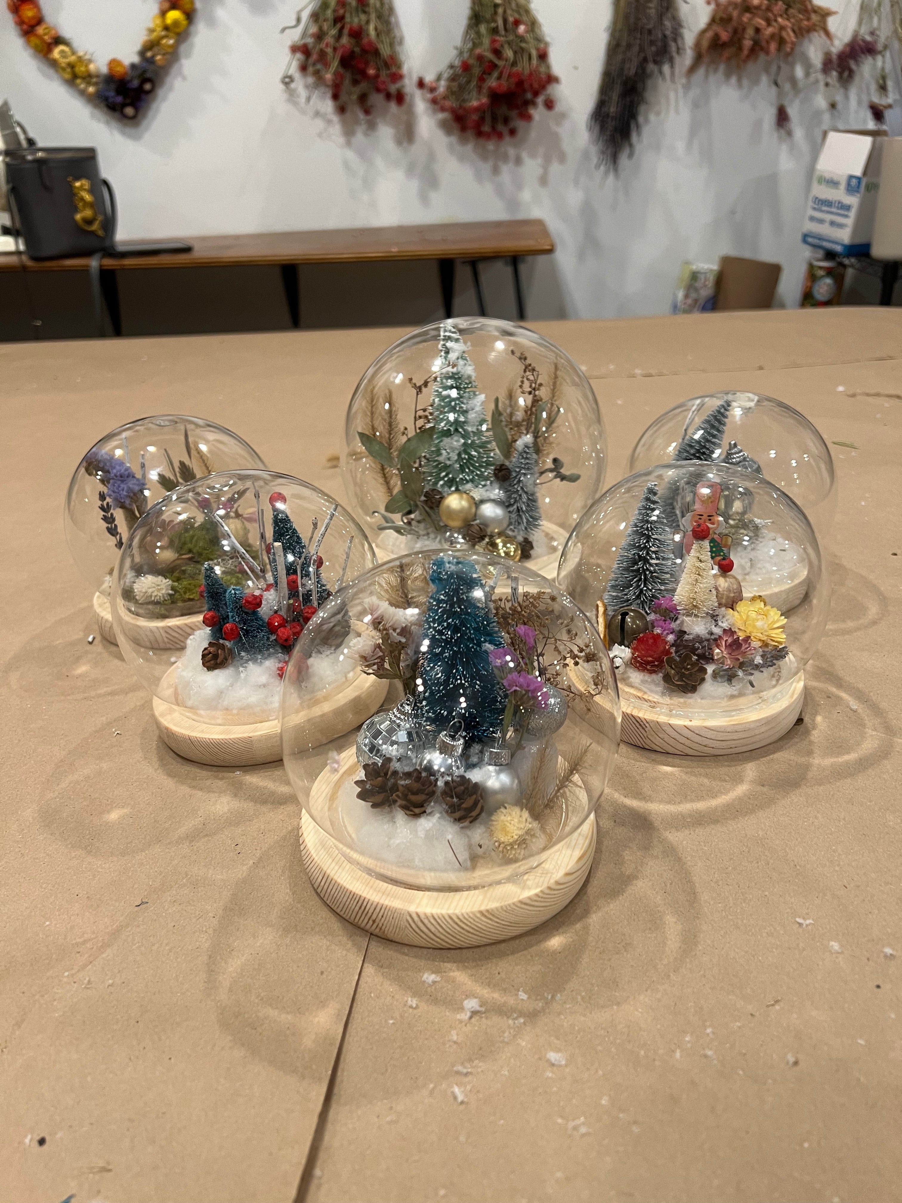 Tickets include a 90-minute snow globe workshop; all tools and supplies; a flower bar featuring an assortment of carefully-curated dried flowers and holiday materials.
